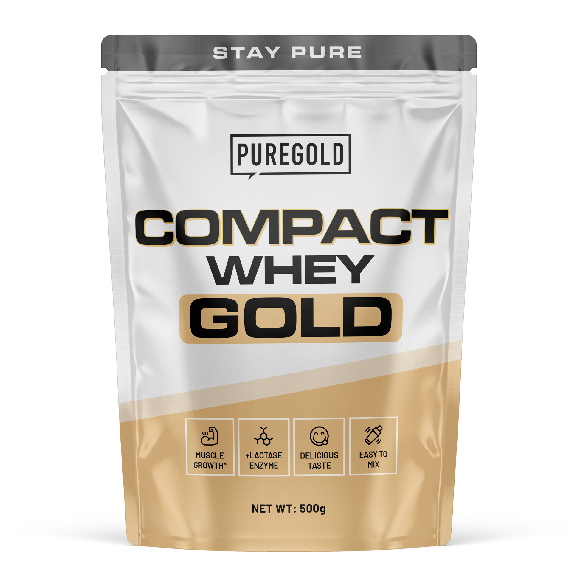 Compact Whey Gold Triple Chocolate 500 g. Eiwitten dragen bij tot groei en instandhouding van spiermassa. Met lactase. Makkelijk te mixen.
