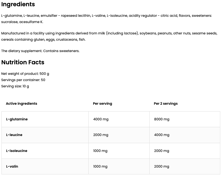 BCAA + Glutamin tilbyder en kraftfuld blanding af essentielle aminosyrer og L-glutamin for optimal muskelrestitution og vækst. Med en forfriskende citronsmag og uden tilsat sukker.