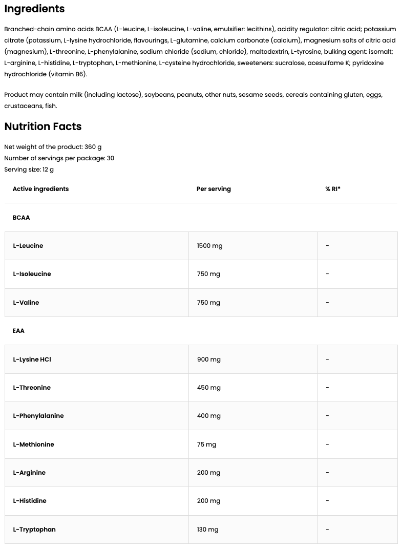 OstroVit EAAdvanced: Komplet blanding af EAA'er og BCAA'er, beriget med elektrolytter. Understøtter muskelgendannelse, vækst og hydrering. Ingen tilsat sukker.