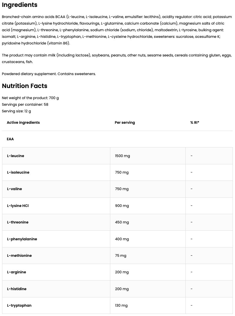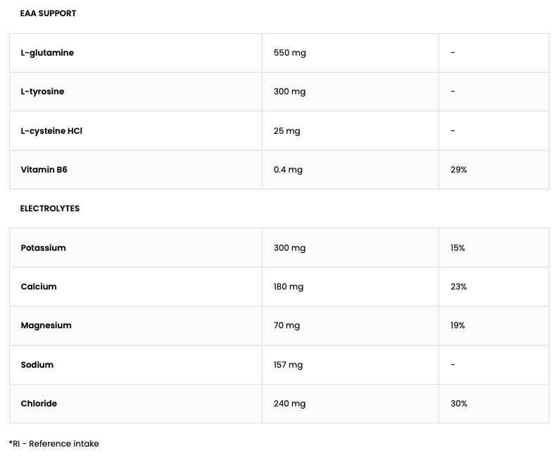 OstroVit EAAdvanced: Komplet blanding af EAA'er og BCAA'er, beriget med elektrolytter. Understøtter muskelgendannelse, vækst og hydrering. Ingen tilsat sukker.