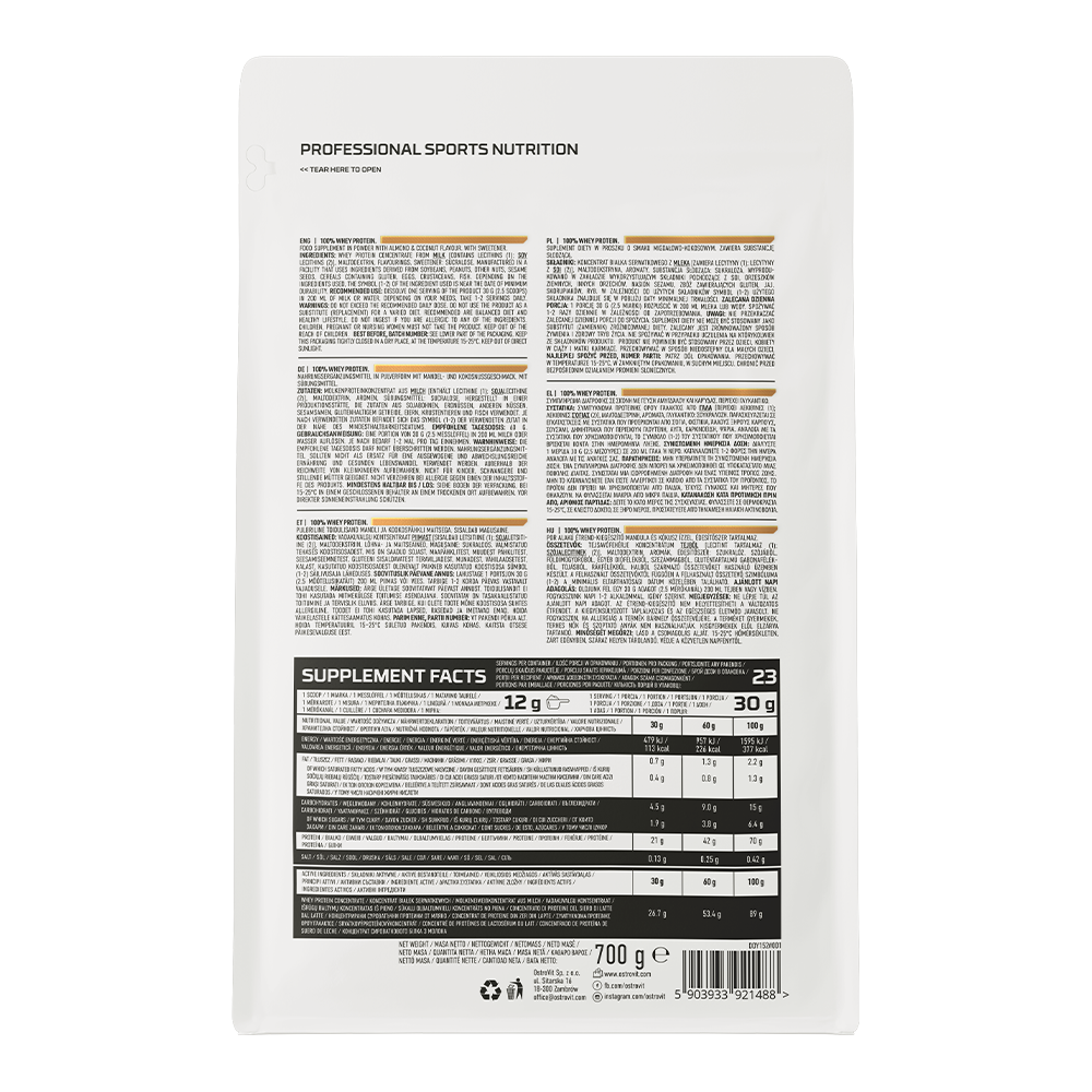 100% Whey Protein – 700 g Amandel‑Kokos, 21 g eiwit | OstroVit