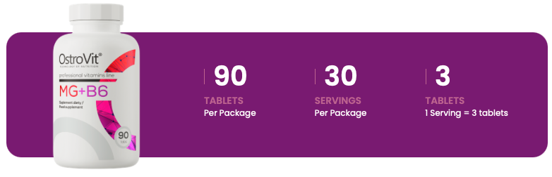 Mg + B6 – 90 tabletten, 375 mg magnesium + 5 mg B6 per dag | OstroVit