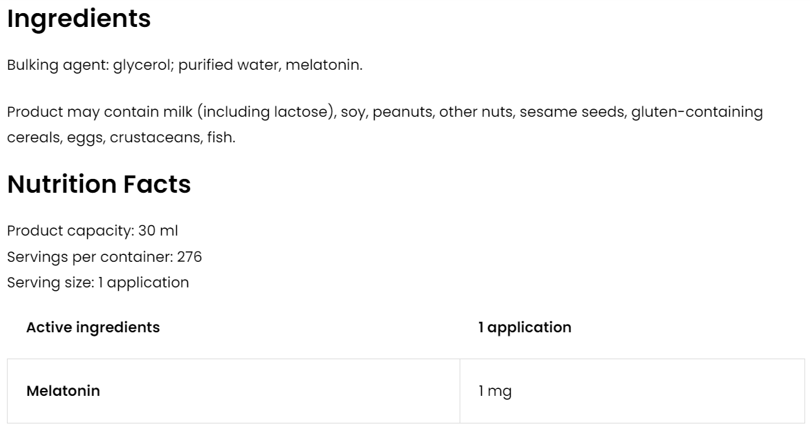 🌙 Melatonine Inhoud:** Elke applicatie levert 1 mg melatonine.
